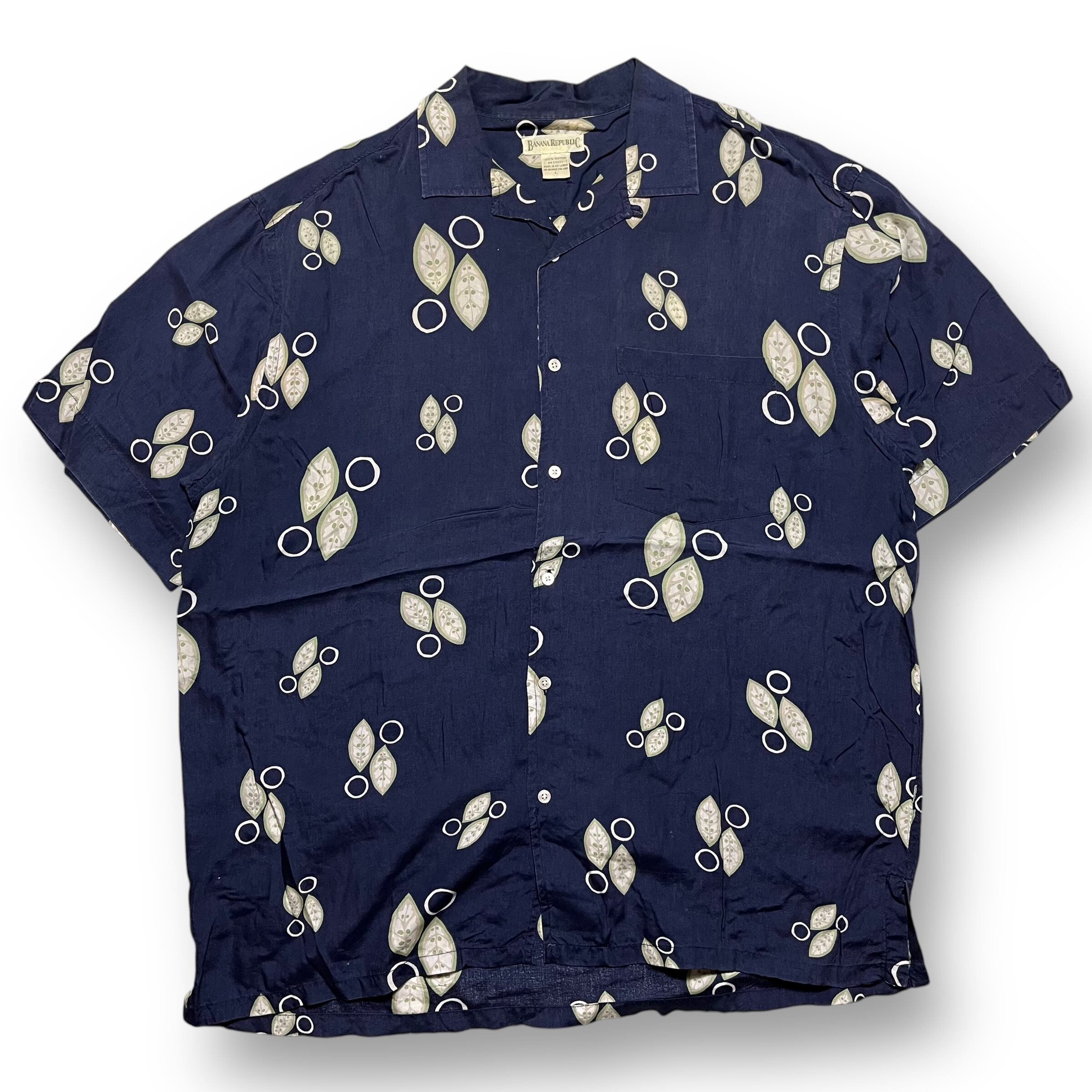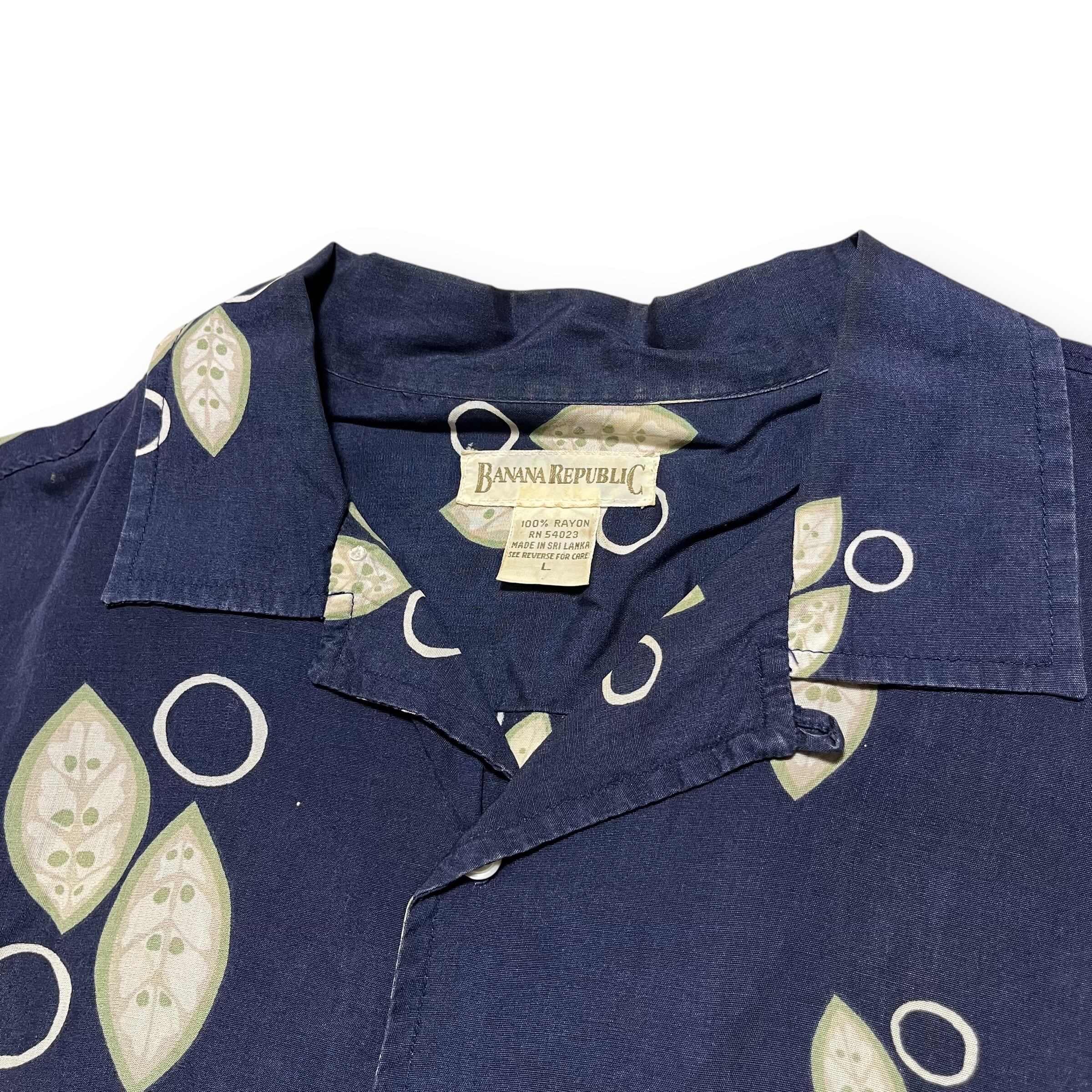 BANANA REPUBLIC 90s RAYON100% Loop Collar S/S Box Shirt