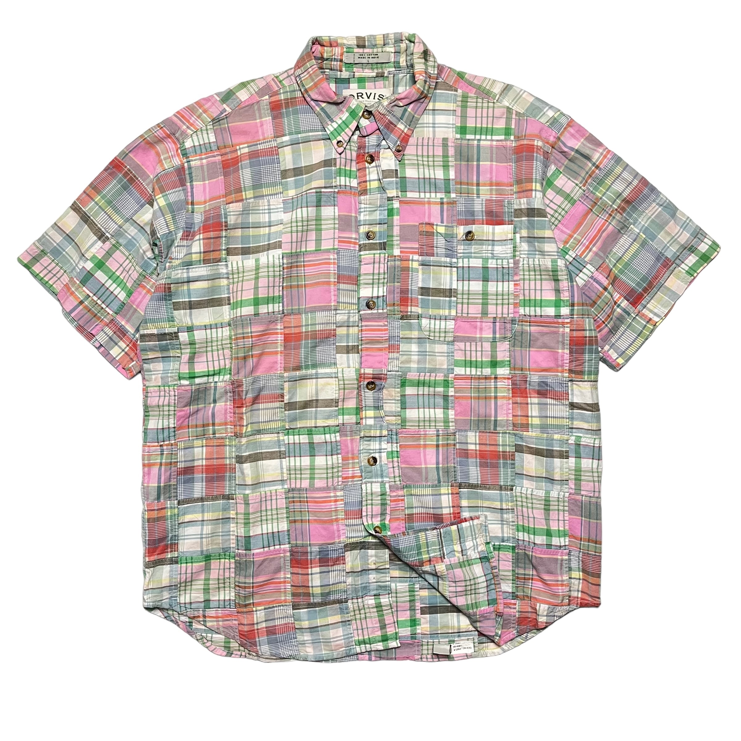 ORVIS 90s〜00s Madras Check Patchwork S/S Shirt