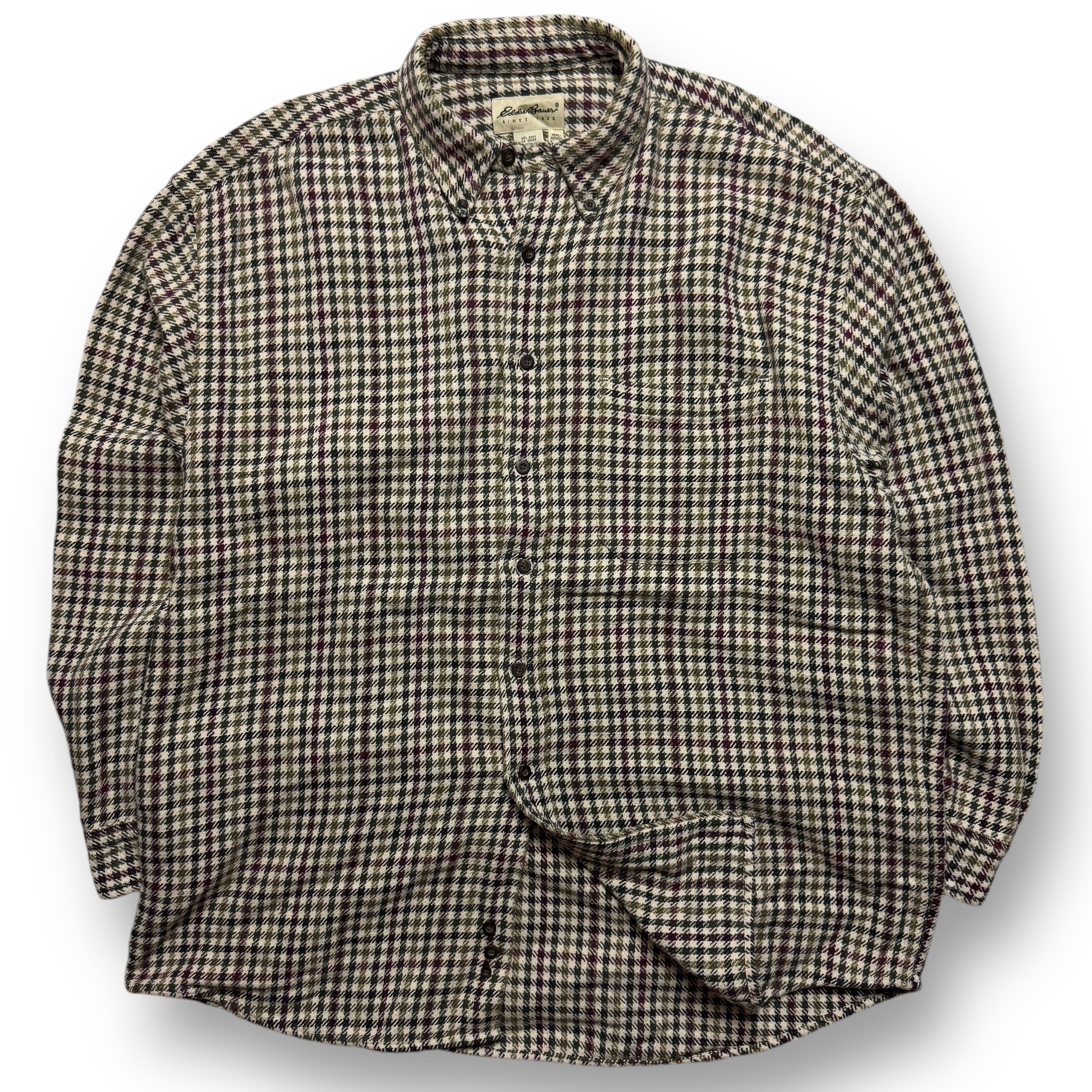 90s Eddie Bauer 白タグ Houndstooth Pattern L/S Heavy Cotton Flannel B.D Shirt